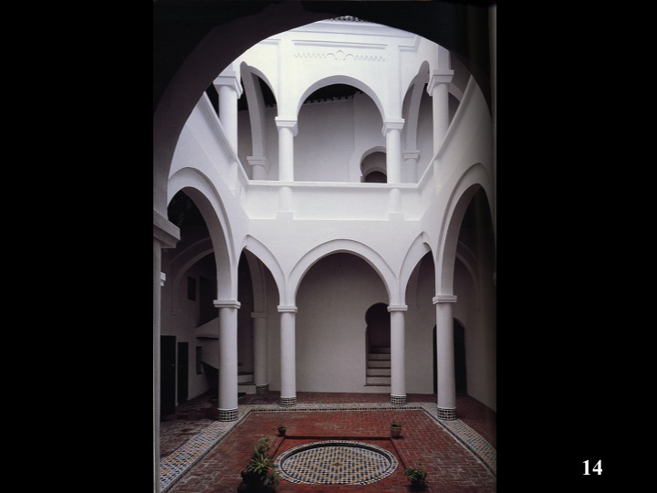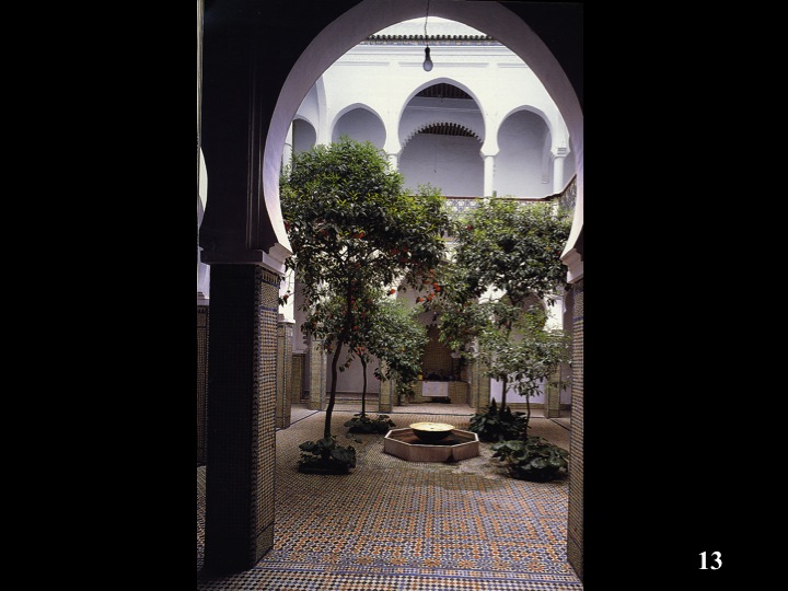 This (Image 12) is an aerial photo taken in 2000, of the city of Tetuan, in northern Morocco. You can see the pattern, the typical pattern of Islamic cities, based on the typology and system of courtyards. But of course, a number of cities in the Muslim world did not follow this pattern. The morphology is different but the code system was very similar. In other words, the code system is responsive to different morphologies, because it’s very flexible, understandable, and very easily implementable. However, this is the predominant pattern found in the Islamic world, as you see it in Tetuan: the courtyard typology and the pattern of streets, cul-de-sacs, and so forth.