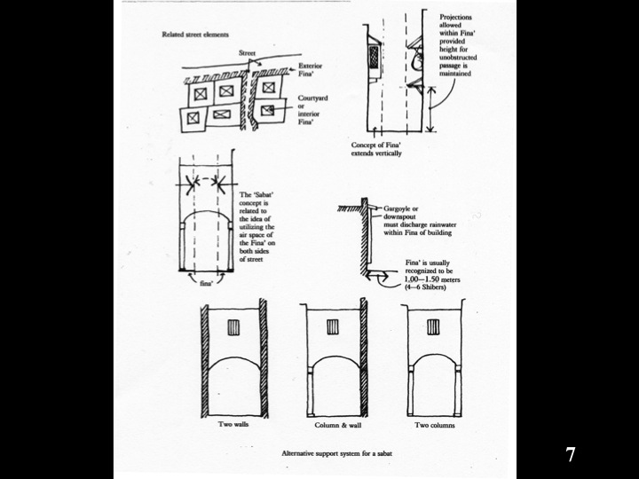 And then, the concept taken further, actually creates the room bridging the street, which Professor Reps mentioned in French as a pontet. It is called sabat, in Arabic, and the concept is very simple: This is your fina; this is the other fina, but in fact, you might as well—if certain conditions exist—connect the two sides and create an additional overhead structure.
