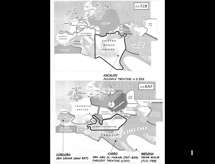 Here, in this period ( Image 2), note territories of the Byzantine Empire, in Kairouan which is now in Tunisia (a town south of Tunis), Ibn Abu Zaid produced a huge study—in volumes; it was recently transcribed and published in 15 volumes. In about a volume and a half, there are complete details of construction and building codes, and matters related to cities. He quotes a great deal from Ibn Abd al-Hakam, who I mentioned in the previous image, and whose treatise is lost. So this material exists now.